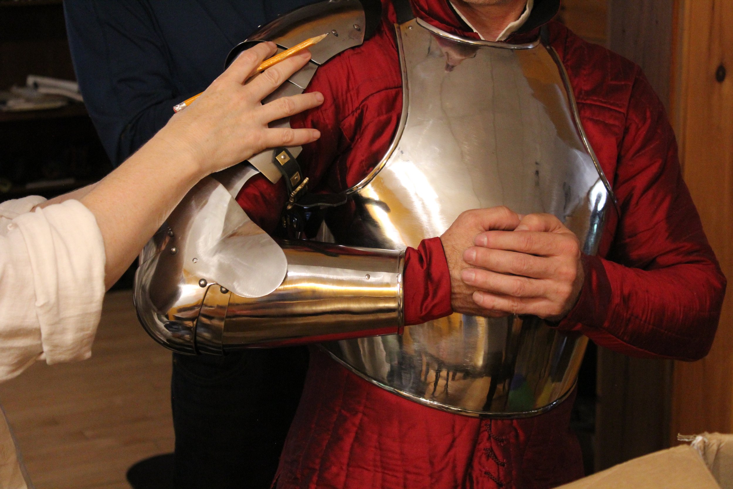 Buying a harness system from Sanctuary Armoury is a very personalized experience with total attention paid to you as we measure, cast, and design your armour. We will construct your matching soft kit including gambeson, arming belt, helmet liner, and shoes to your shape and specifications.